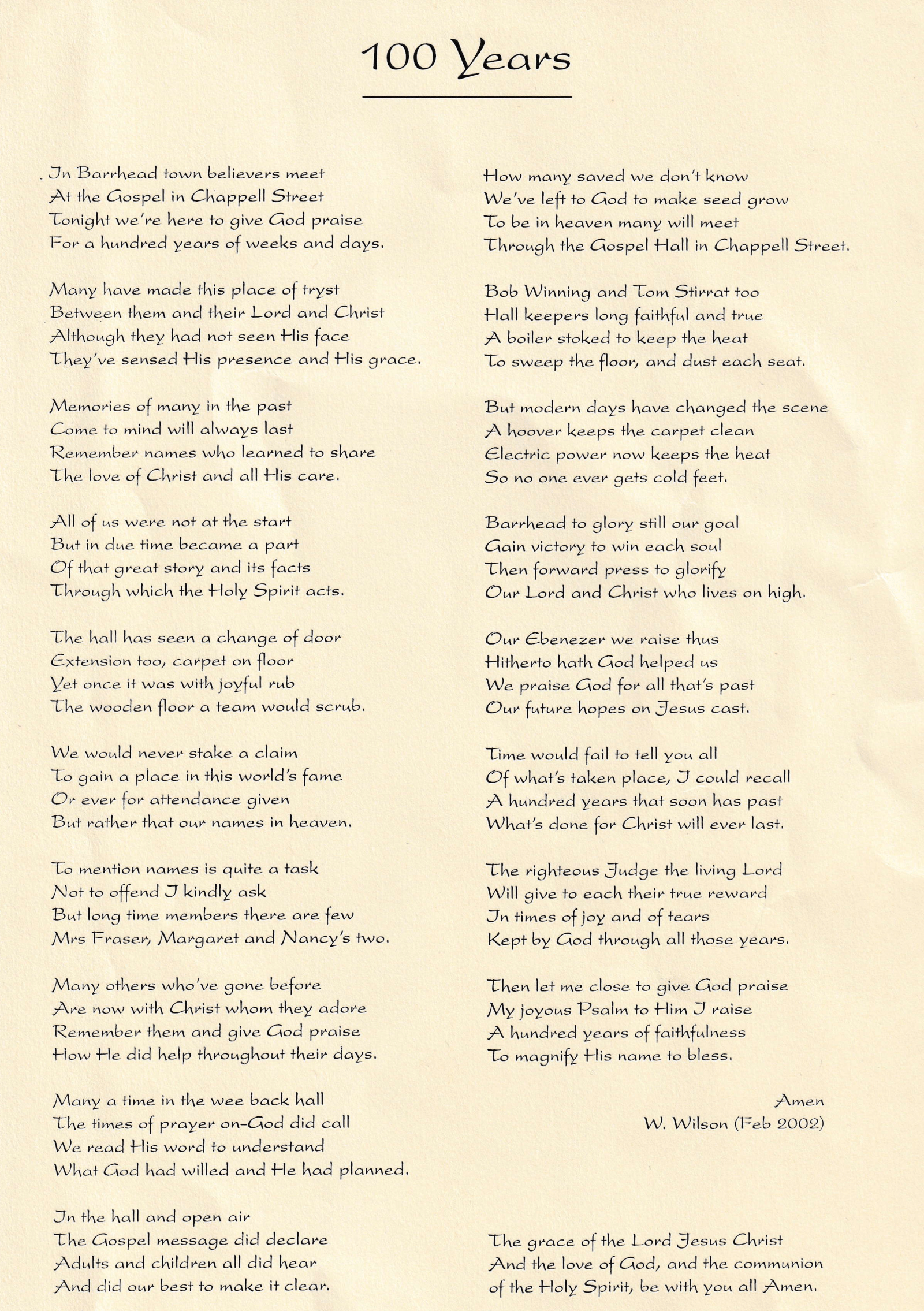 1994 was the centenary year for this gospel hall and the copy documents below were created to celebrate this 100 year event.